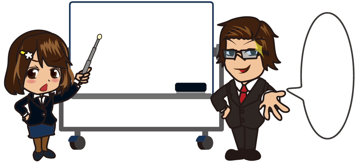 ホワイトボードを使って説明する2人「うりぼぅ・むこりん」