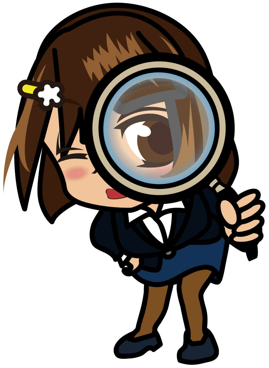 虫眼鏡でこちらを覗き込む女の子「むこりん」