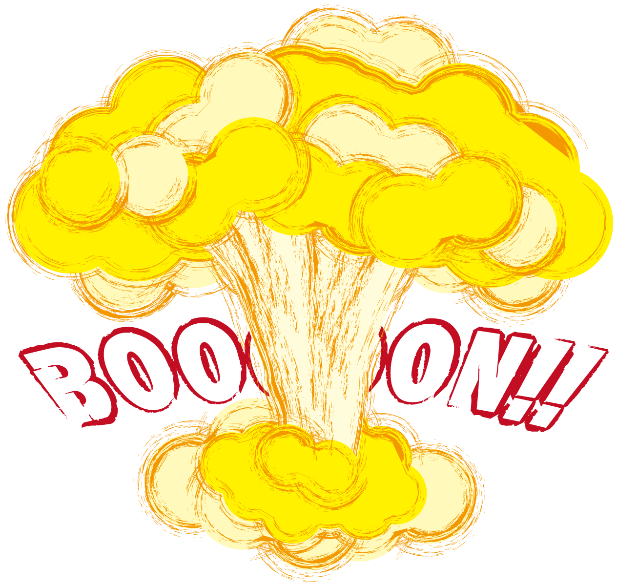 ボーーーーーンッ!!爆風がこっちにも飛んできそうな爆発のイラスト素材。