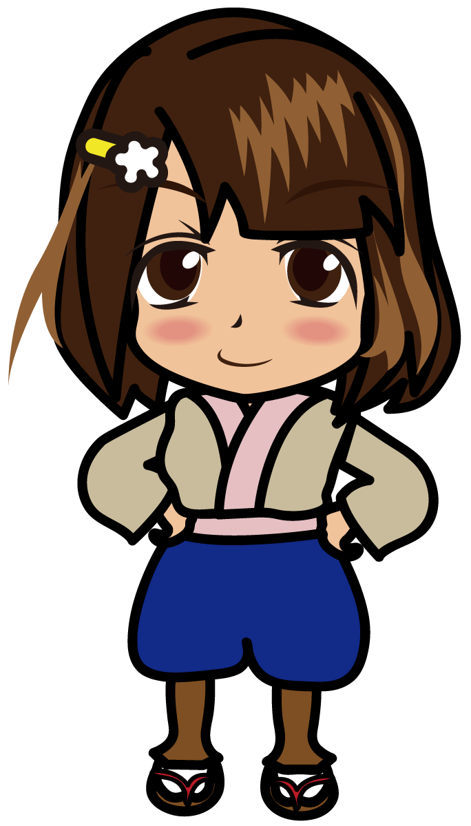 腰に手をあてドヤ顔でこちらを見る和服の女の子「むこりん」