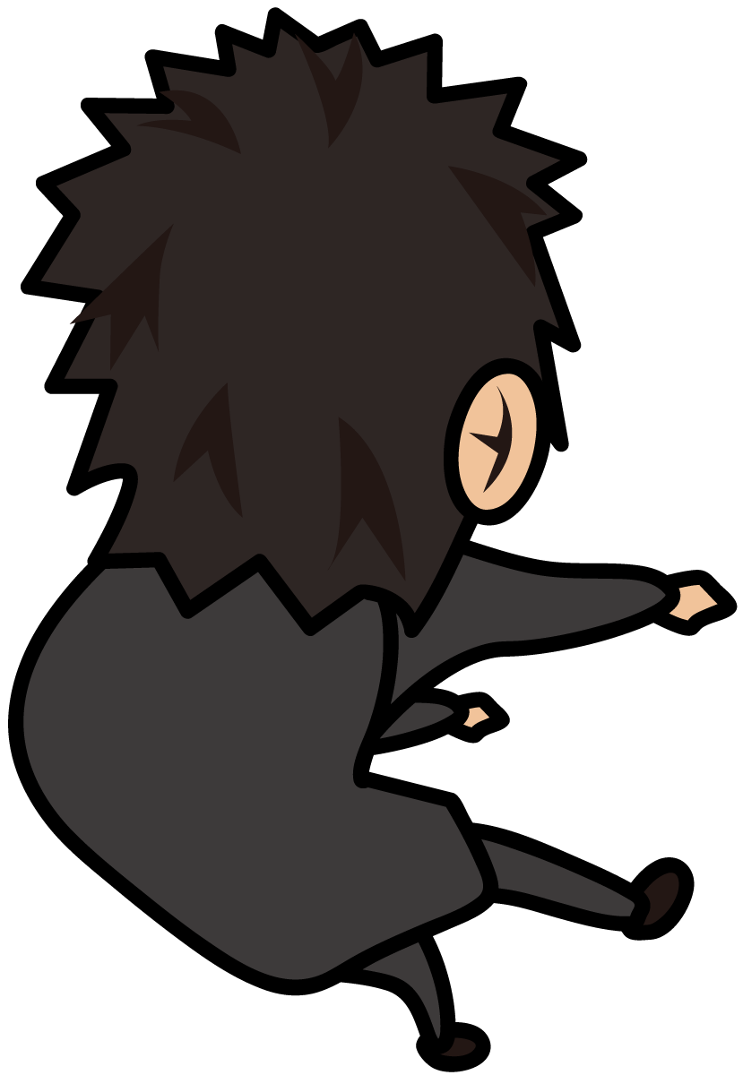 吹っ飛ばされるビジネスマンの後ろ姿「とびぃ」