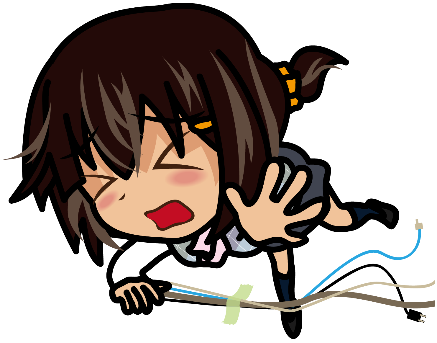 ケーブルに引っかかってこける新人OLのイラスト素材「あーたむ」