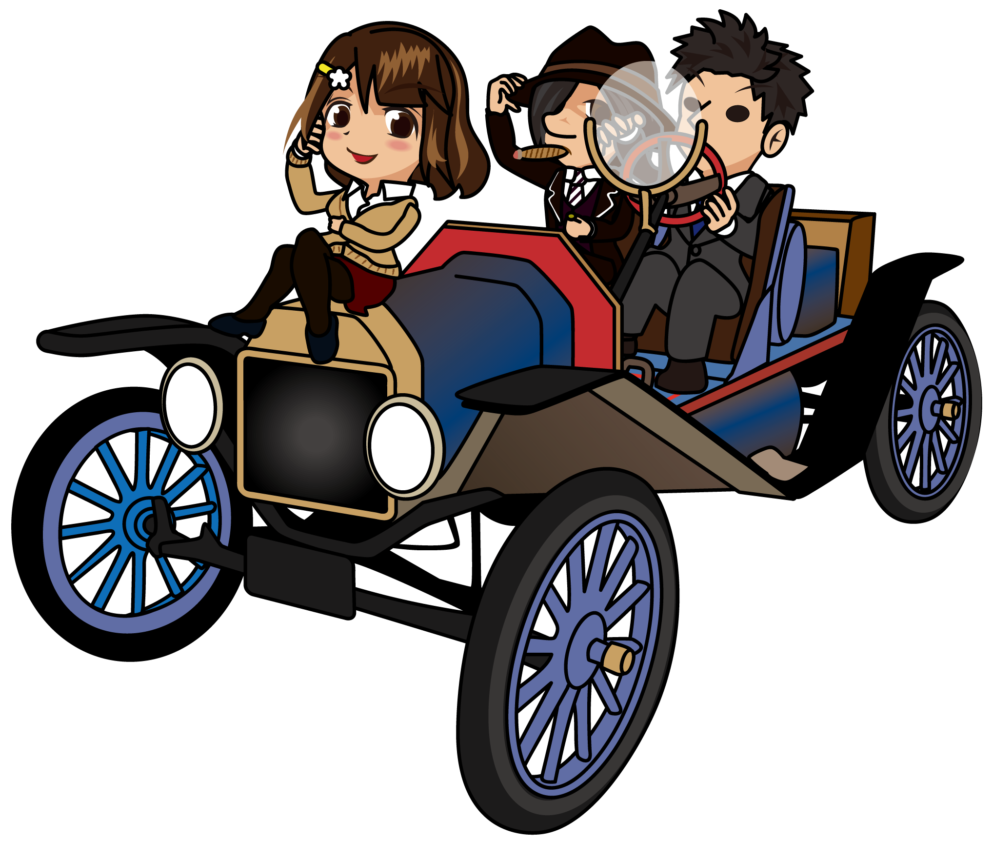クラシックカーに乗ってぶいぶいいわす悪の組織構成員「はたさん、とびぃ、むこりん」