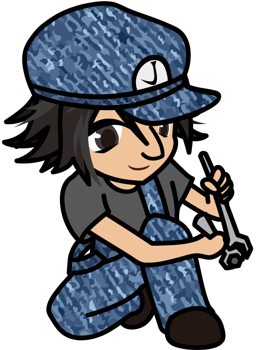 せっせと仕事をするオーバーオールの配管工「准さん」