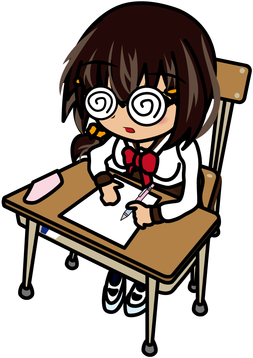 確かにメガネキャラで真面目に机に座ってテストをやってるシチュエーションなのに…