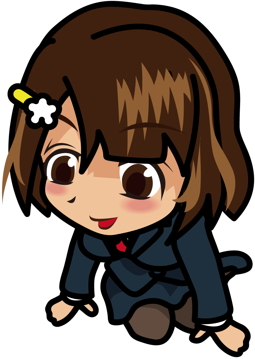 ぺたんと座って覗き込む女の子「むこりん」