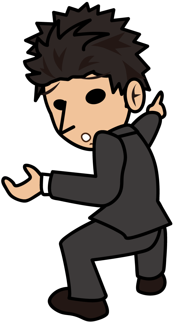 遠くを指さして助けを呼ぶビジネスマン「とびぃ」