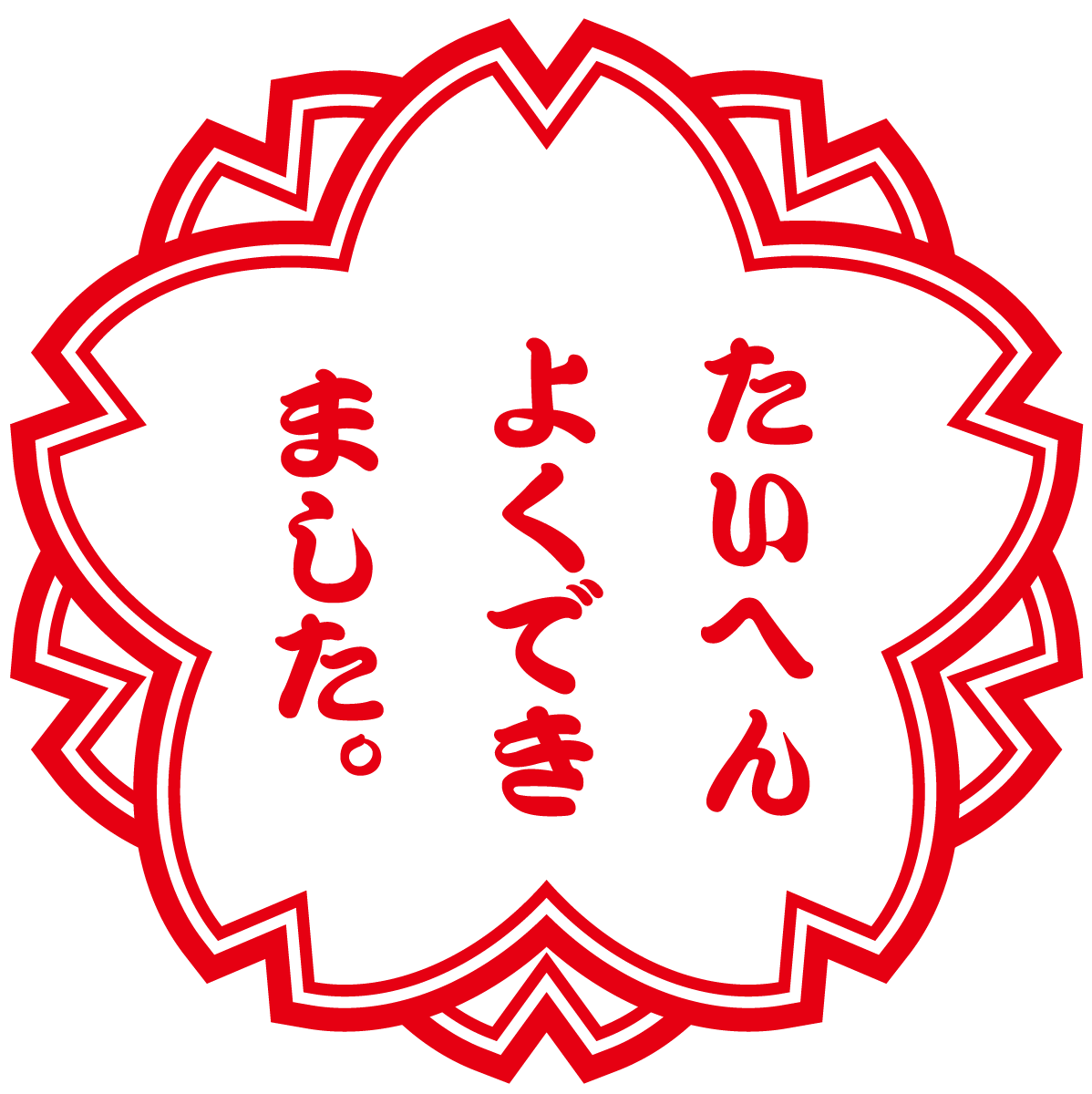 評価印ですね、せんせいスタンプとかごほうびスタンプという名前で売られています。あーたむは「もうすこしがんばりましょう」ばかりでしたけどね
