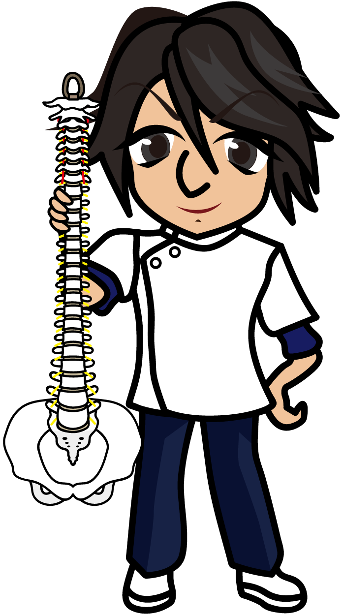脊柱模型を持った理学療法士「准さん」