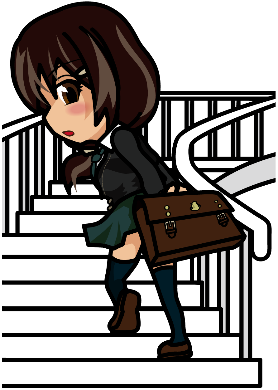 スカートを押さえて階段を昇る女子高生「あーたむ」