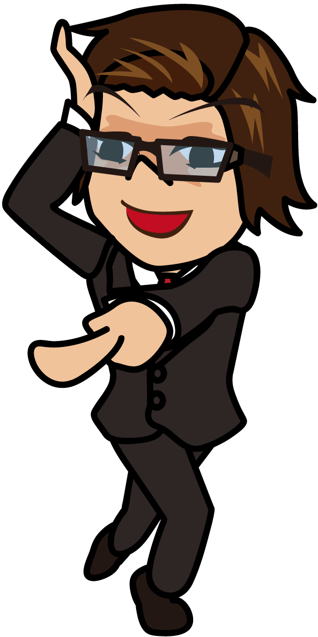 変なポーズで指をさすビジネスマン「うりぼぅ」
