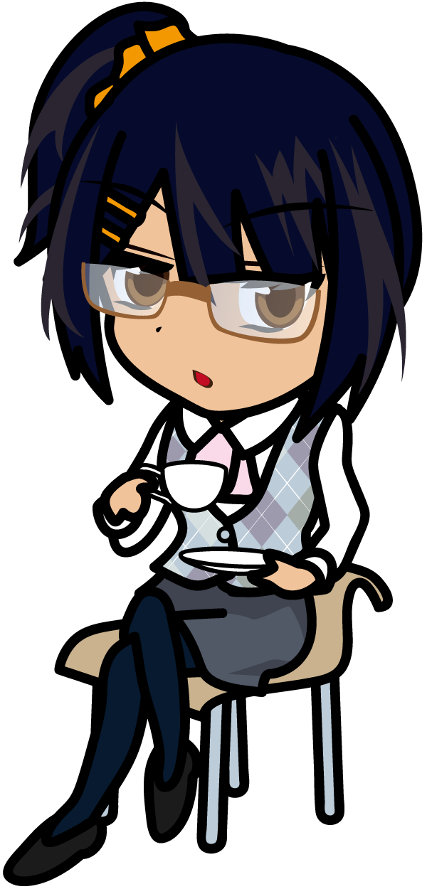 紅茶を飲みながらこちらを見るOL「みーたむ」