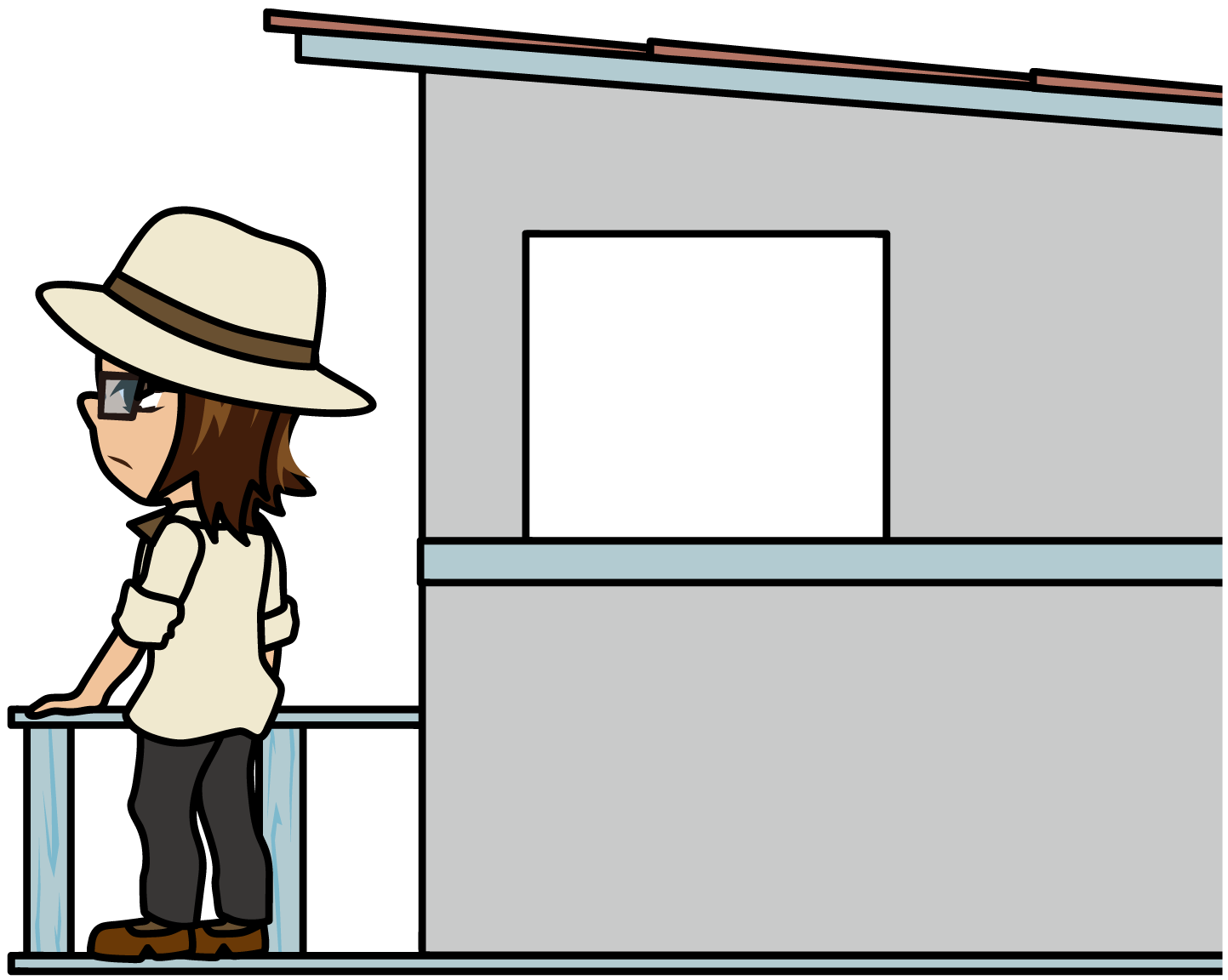 ヨットハーバーの小屋で夕陽を見つめてたそがれる男性のシルエット「うりぼぅ」