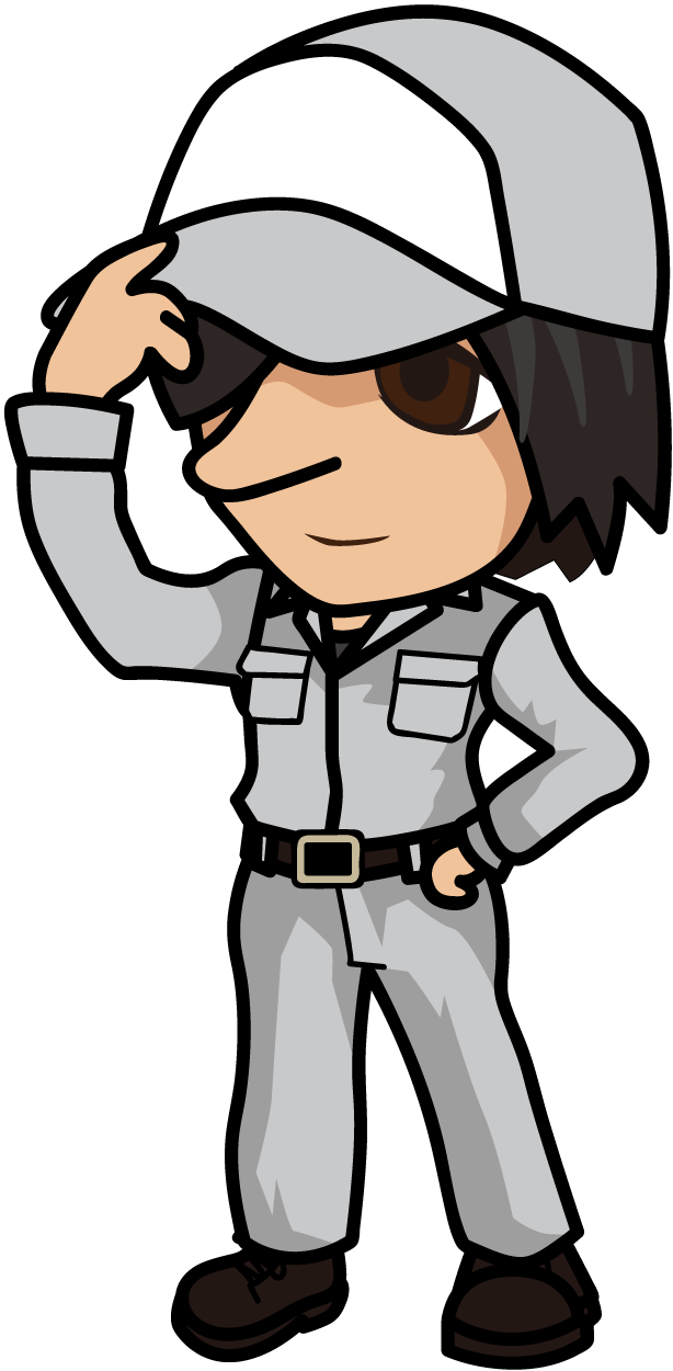 無地の帽子をかぶった整備士