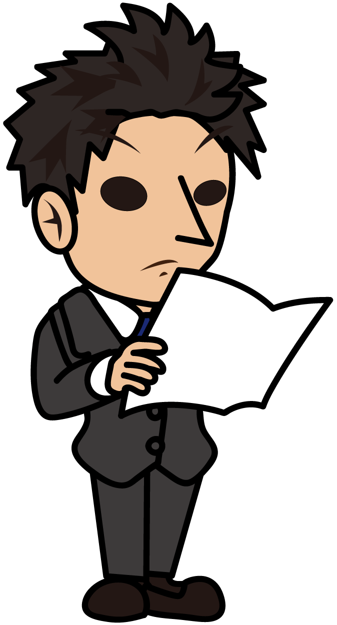 プリントを見ながら考えるビジネスマン「とびぃ」