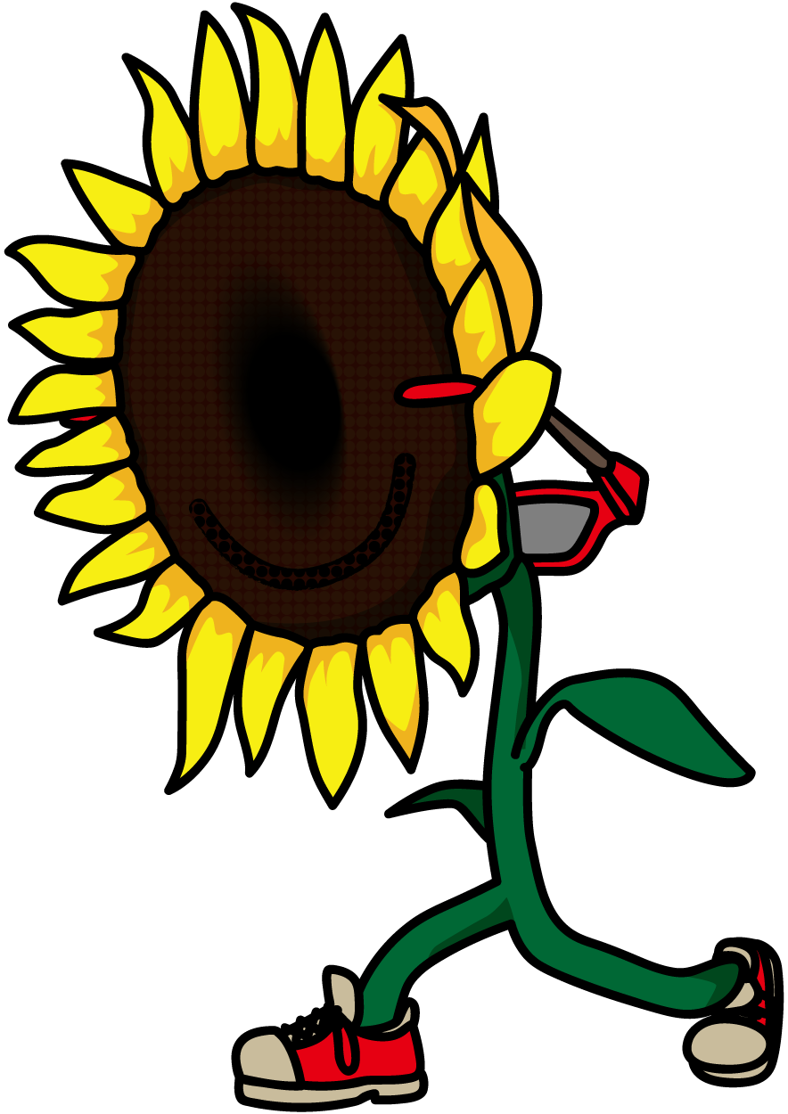 後頭部にサングラスをかけて歩くひまわり