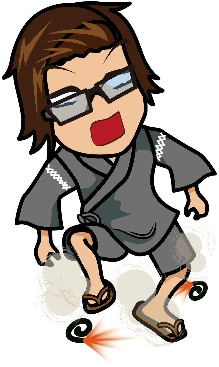 ねずみ花火に慌てる甚平を着た男「うりぼぅ」