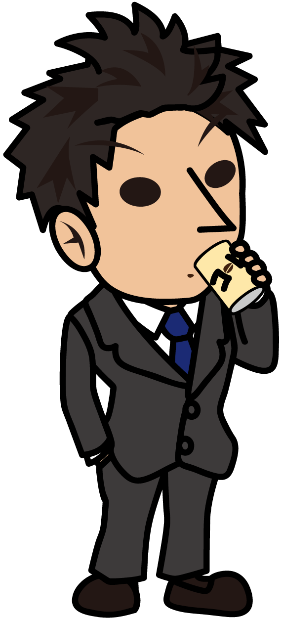 ポケットに手を入れて缶コーヒーを飲むビジネスマン「とびぃ」