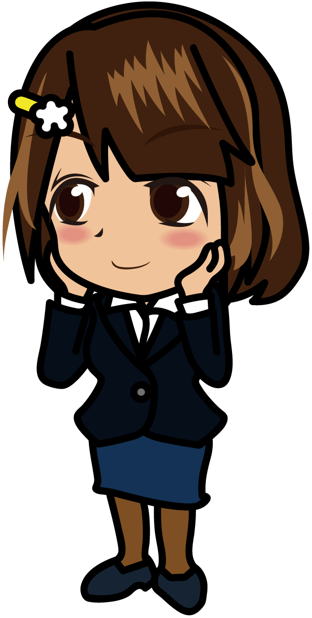 ほっぺたに手をあてて微笑む事務員「むこりん」