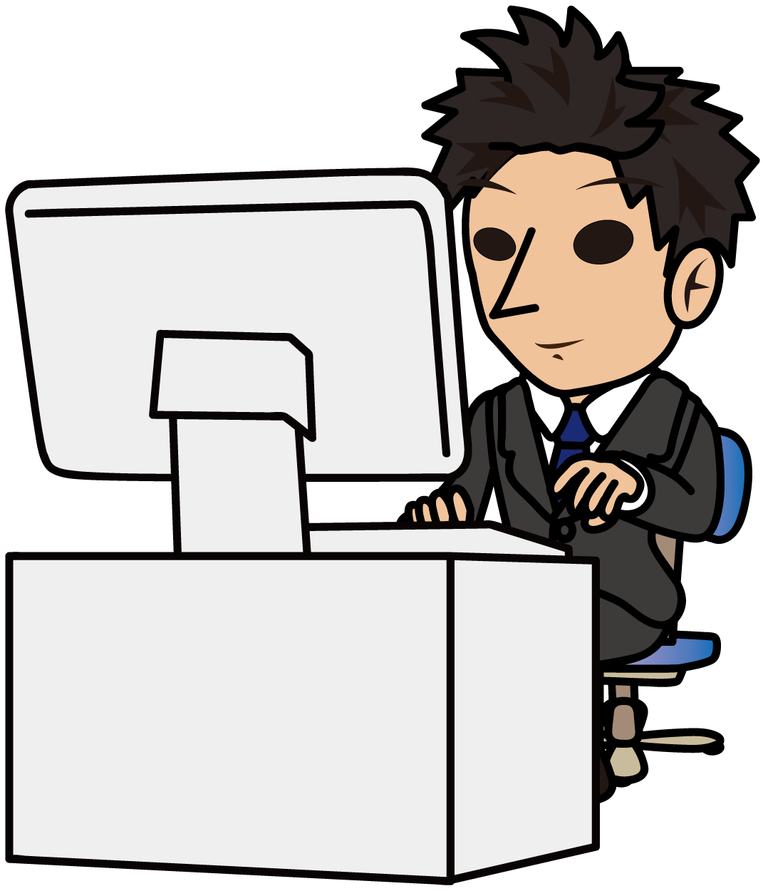 笑顔でパソコン入力するビジネスマン「とびぃ」