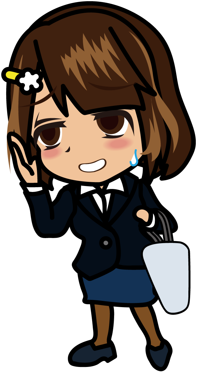 申し訳なさそうに歩く事務員「むこりん」
