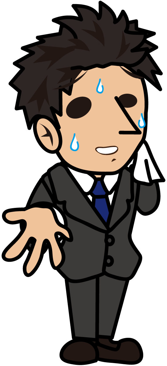 汗を拭きながら説明するビジネスマン「とびぃ」
