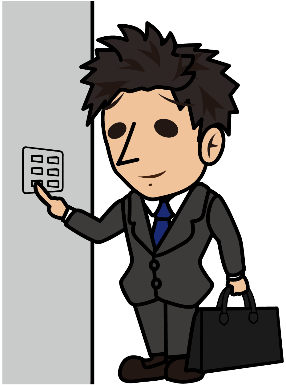 呆れた表情で電気を消すビジネスマン「とびぃ」
