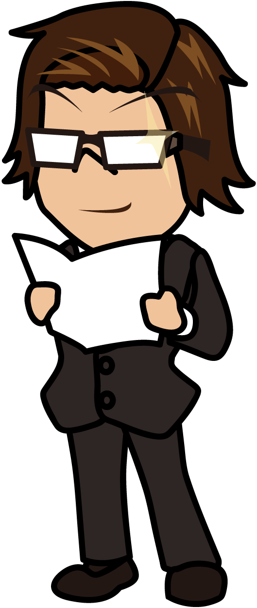 資料を見ながら不敵な笑みを浮かべるビジネスマン「うりぼぅ」