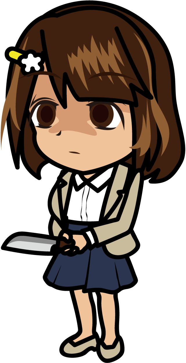 包丁を持ってたたずむ私服のヤンデレ事務員「むこりん」