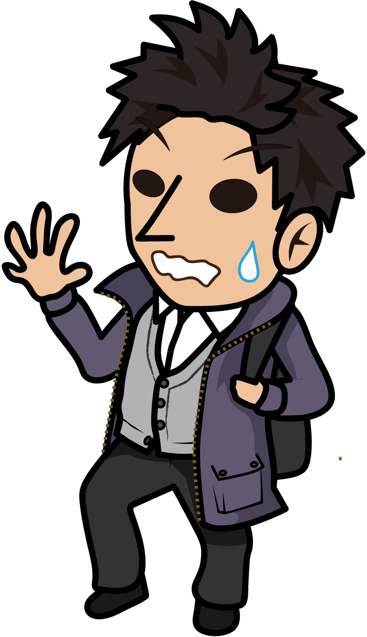 焦って後ずさりする若者「とびぃ」
