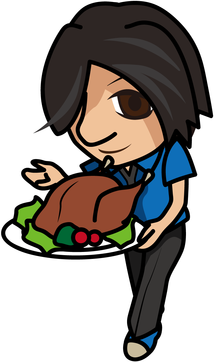 七面鳥を提供するボウリング店スタッフ「はたさん」