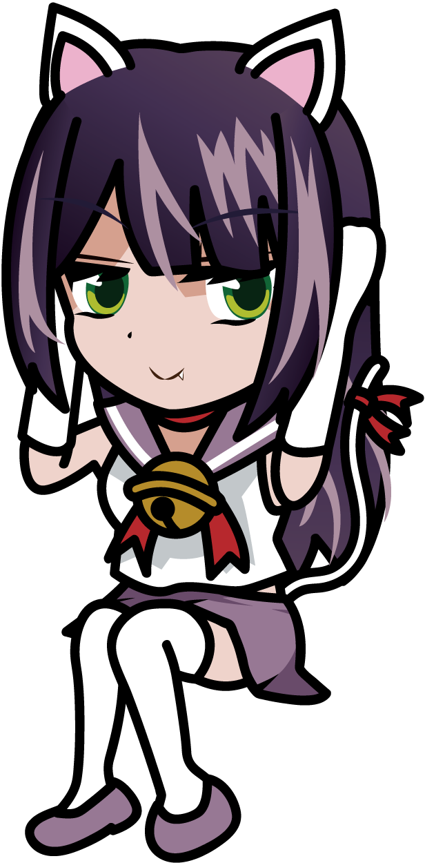 座って化粧直しする白い猫耳制服娘「ねこみみーたむ」