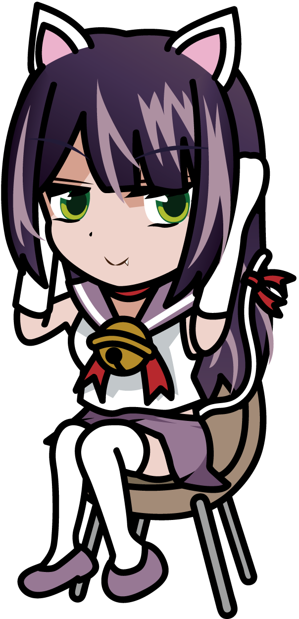 椅子に座って化粧直しする白い猫耳制服娘「ねこみみーたむ」