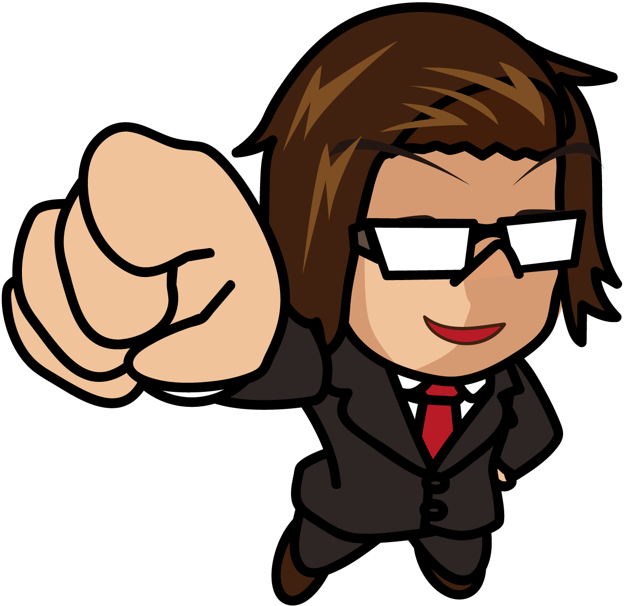 腰に手を当て自信満々に指差すビジネスマン「うりぼぅ」