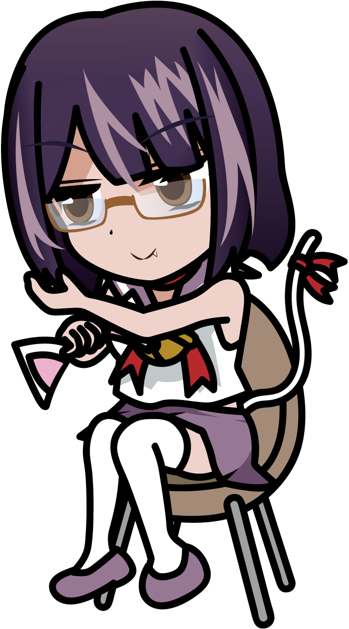 椅子に座って猫耳を付ける制服メガネっ娘「ねこみみーたむ」