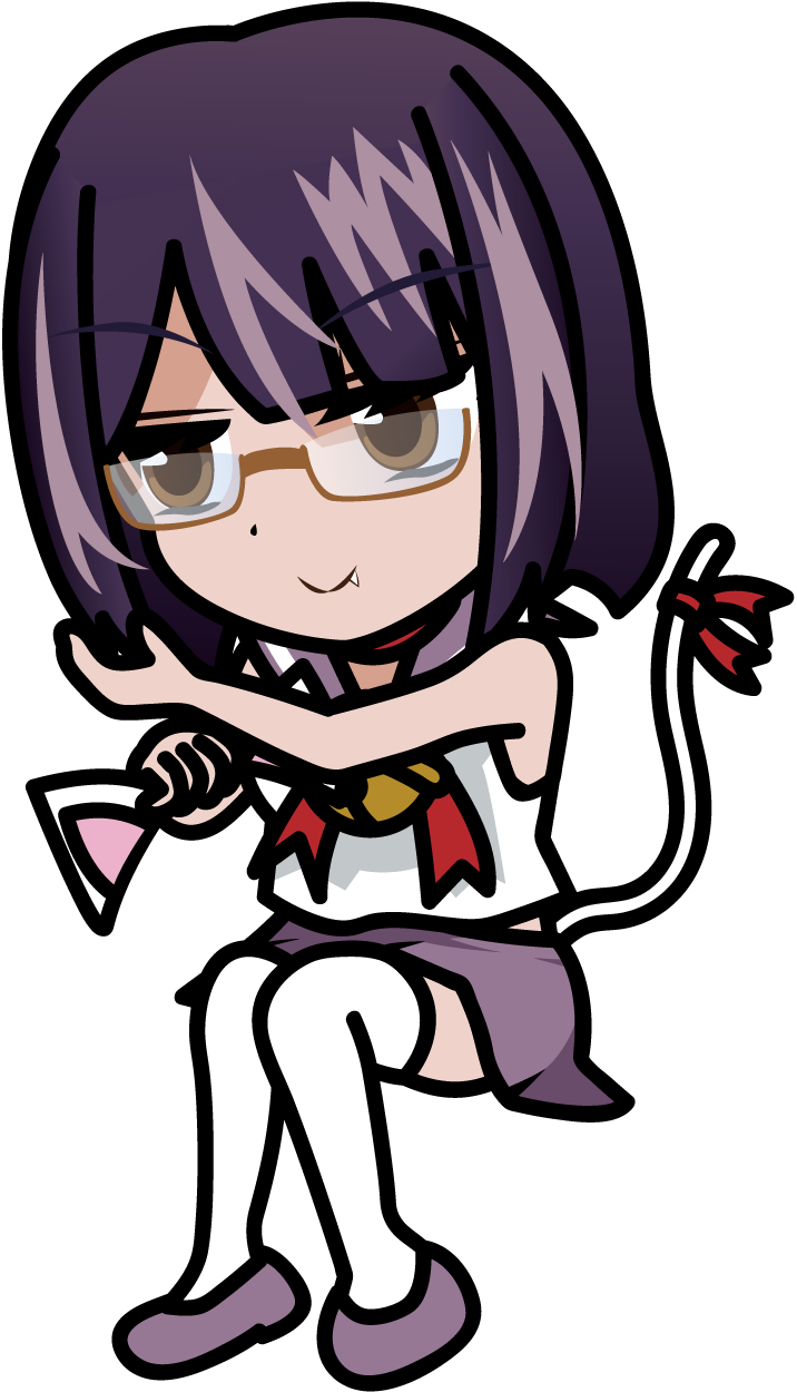 座って猫耳を付ける制服メガネっ娘「ねこみみーたむ」