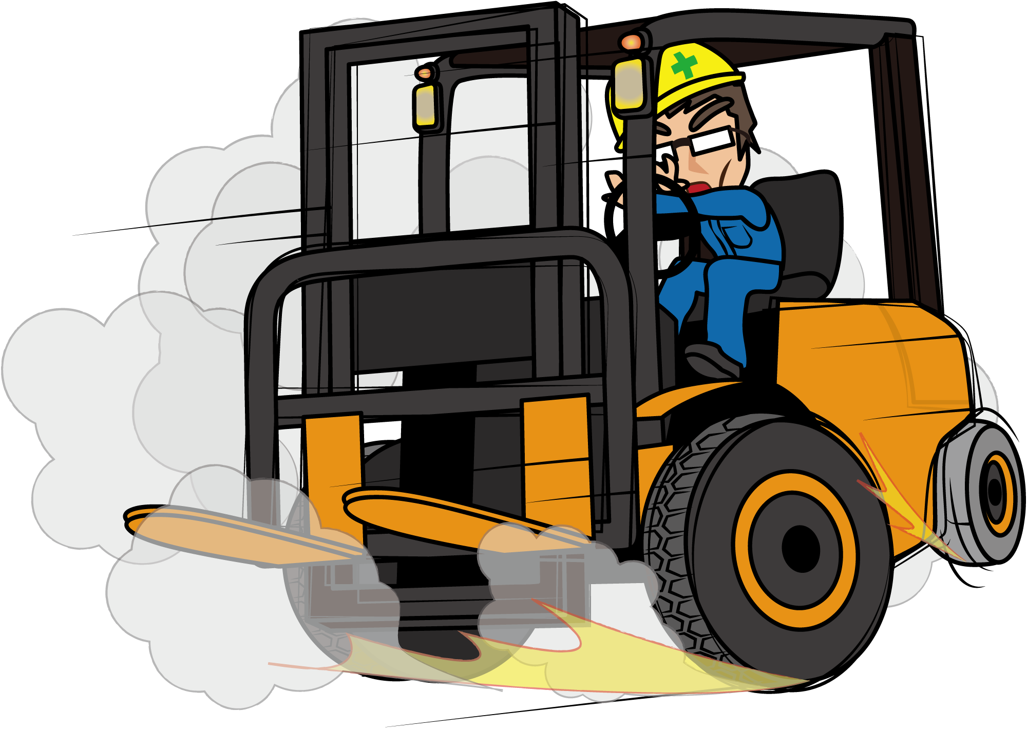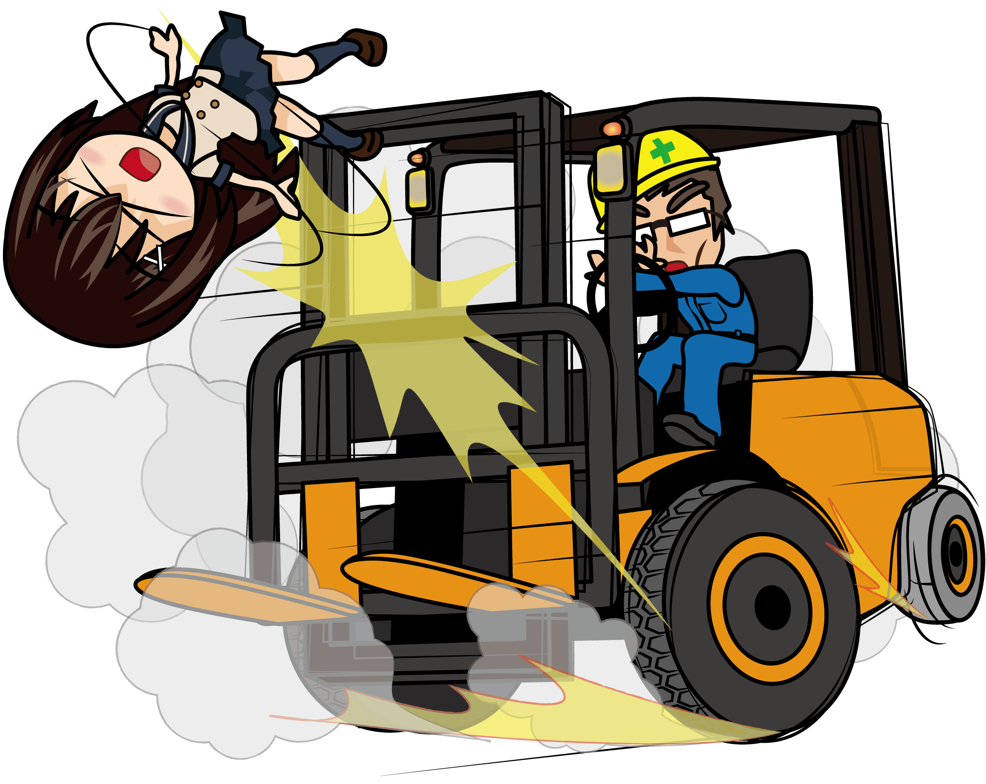 フォークリフトでドリフトする作業服のおじさん「妖精さん」