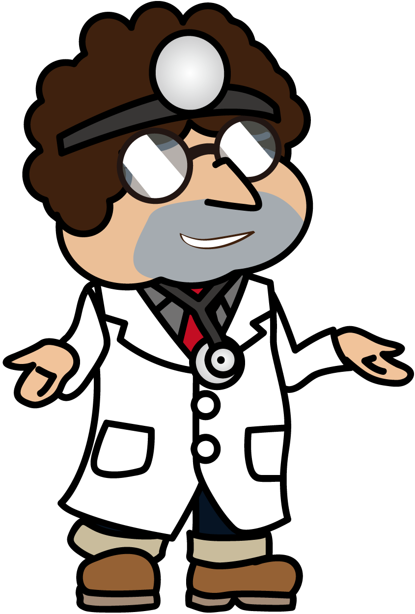 ニヤニヤ笑いながら説明する小太りな医者「とっつぁん」