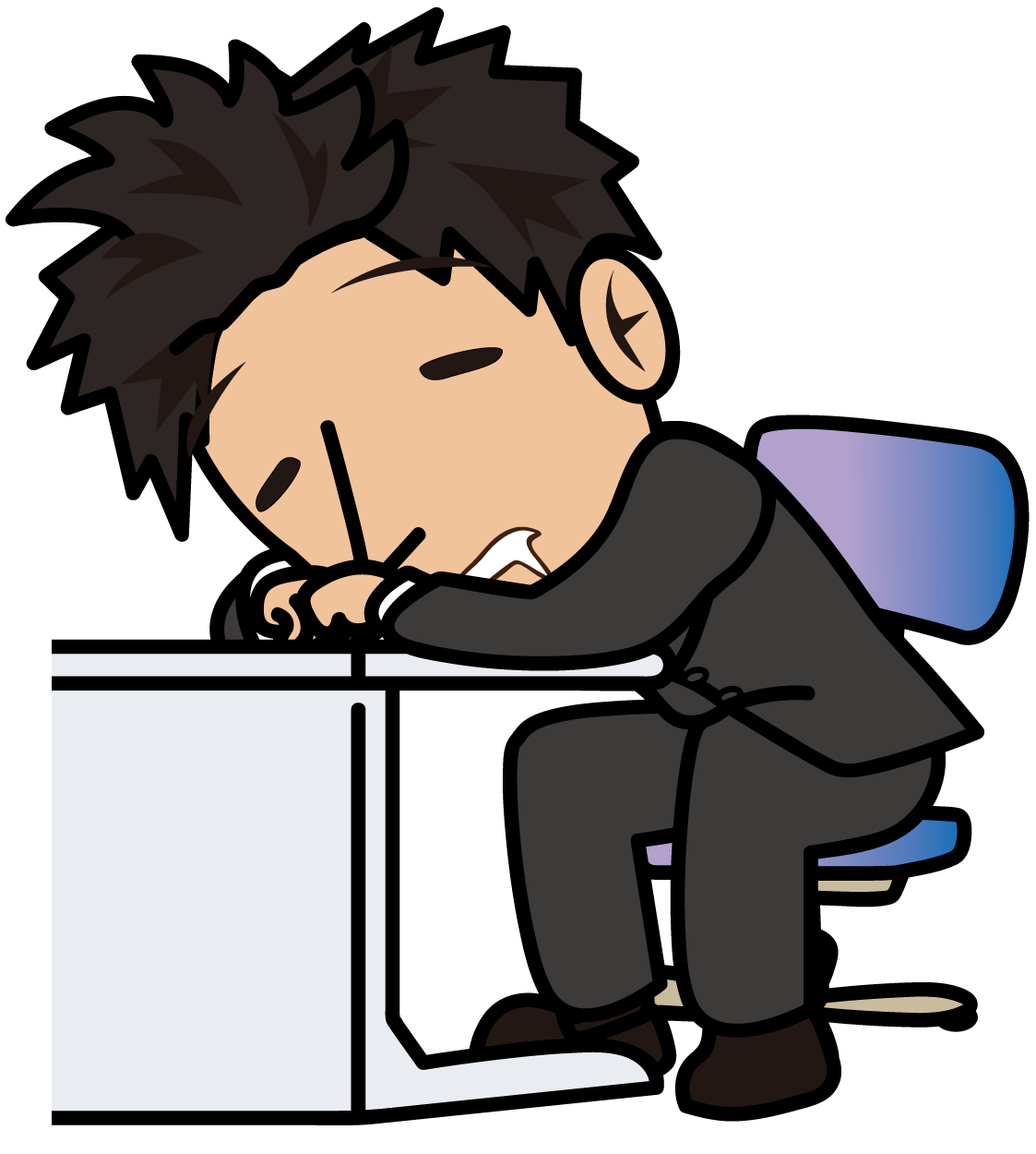 疲れ果ててデスクで眠るビジネスマン「とびぃ」