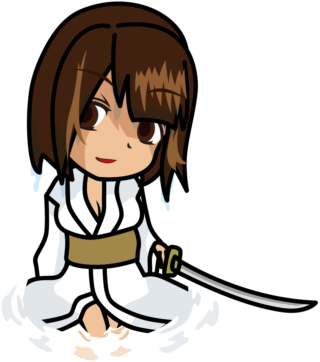水面で日本刀をもって脱力した白装束の濡れた女性「むこりん」