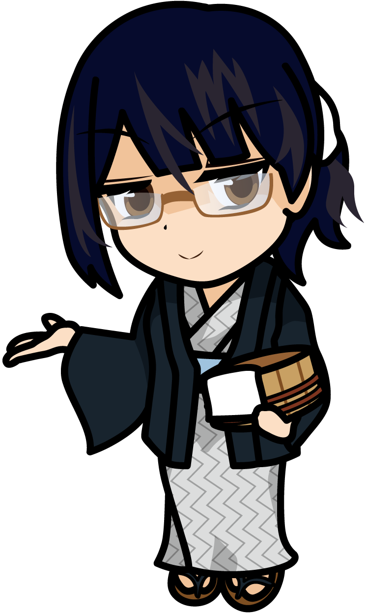 右手で紹介する旅館浴衣を着た女性のイラスト素材「みーたむ」