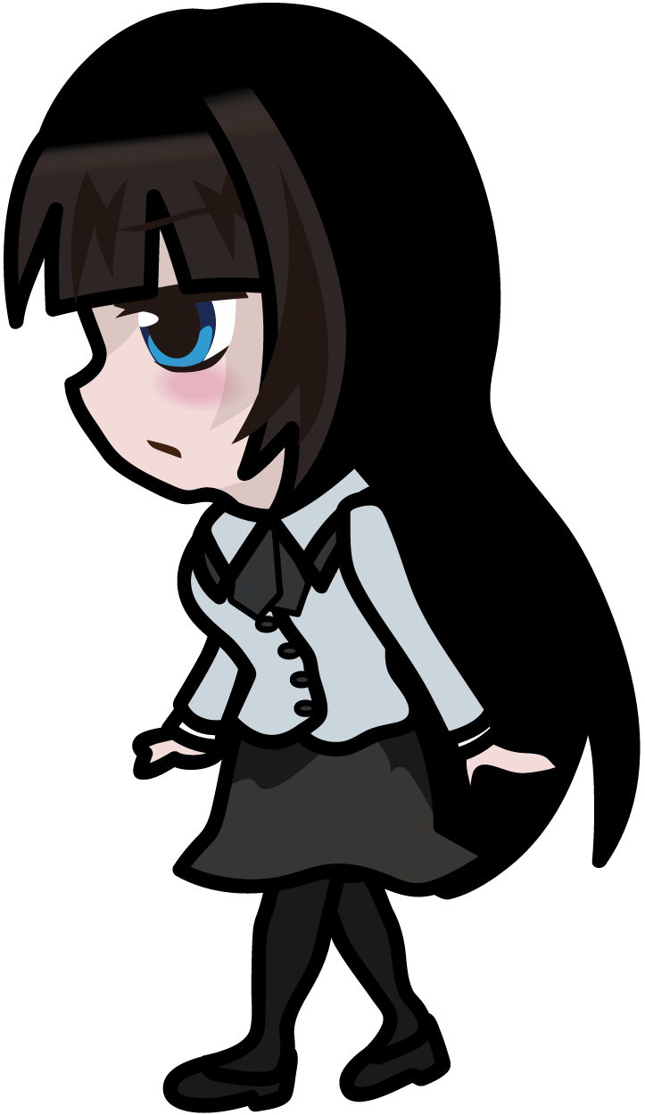 黒髪ロングで前髪ぱっつん…無表情…服装もモノクロ系統…