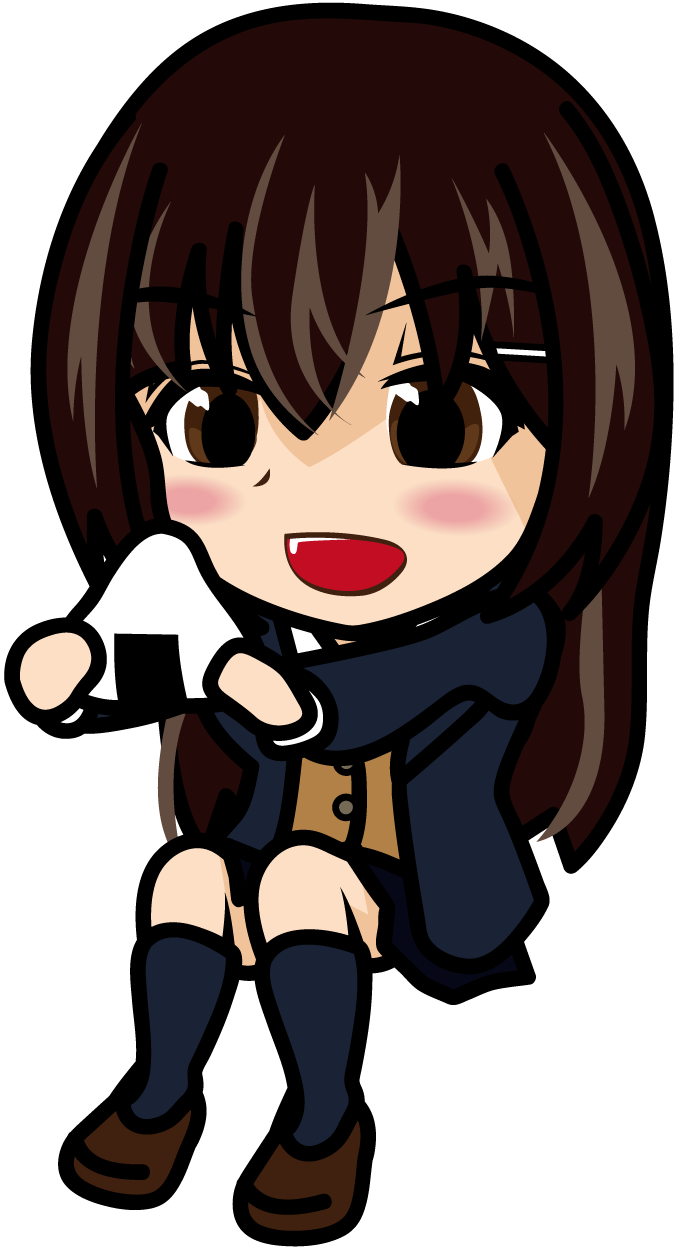 米俵に座っておにぎりを持った女子高生のイラスト素材「あーたむ」