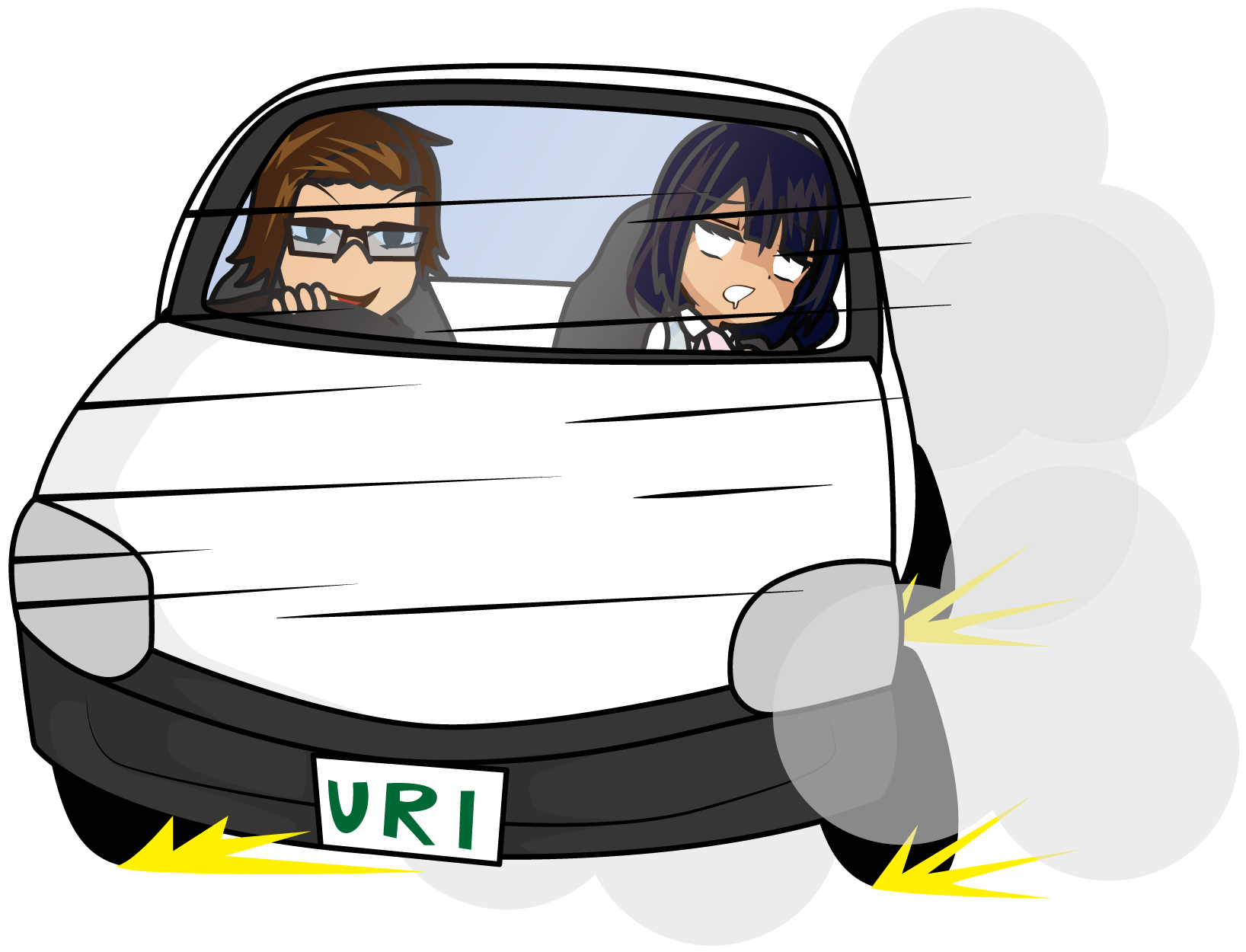 営業車を乗り回すビジネスマンと乗り物酔いしている女子社員と跳ね飛ばされた女子高生「うりぼぅ×みーたむ×あーたむ」