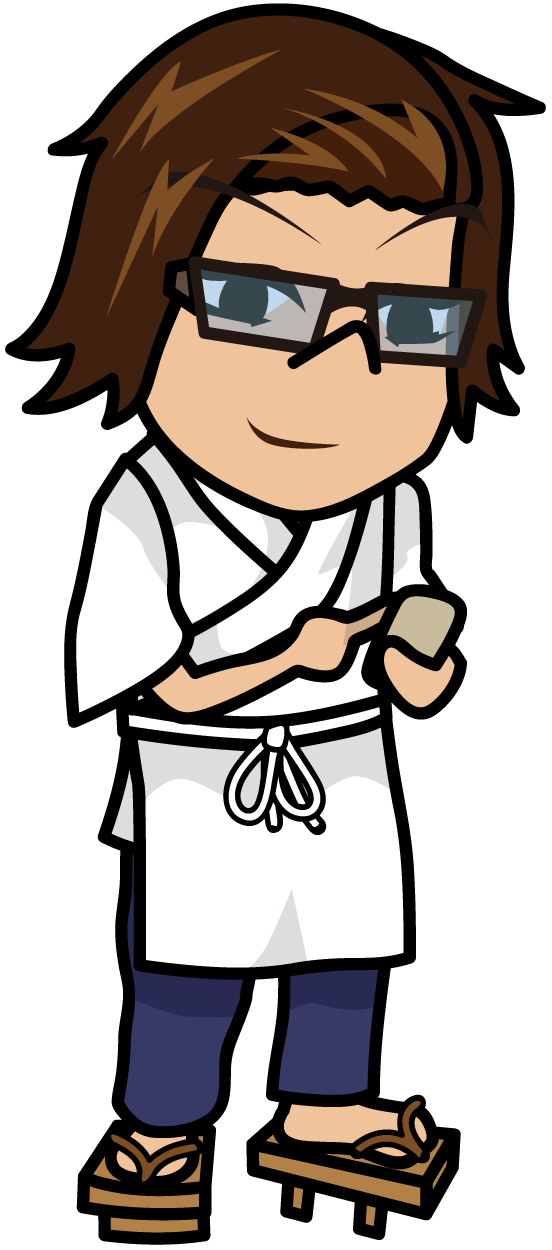 ハンディターミナルに注文を入力する板前「うりぼぅ」