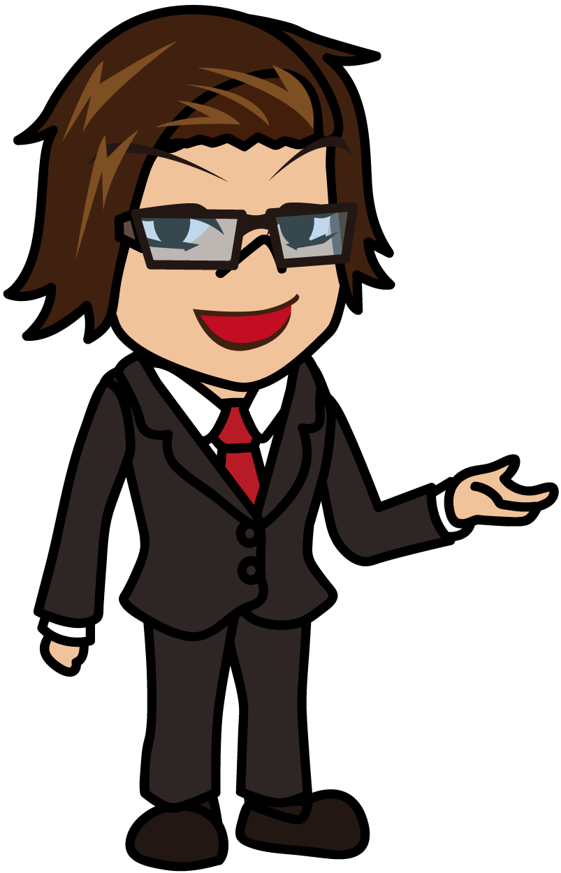 得意気な笑顔で話すビジネスマン「うりぼぅ」