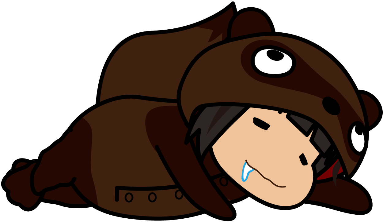 寝てる…新型のタヌキスーツで(笑)