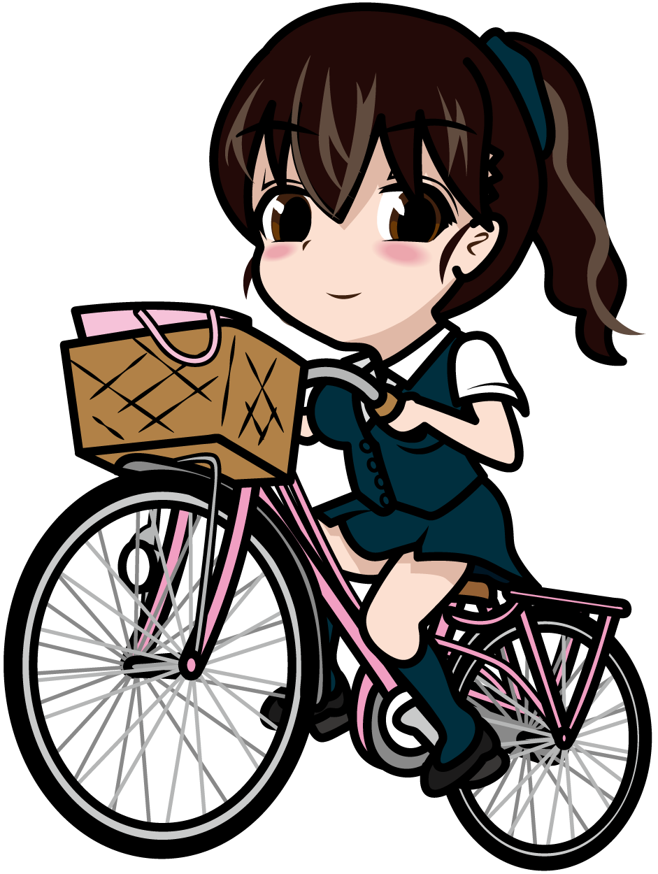 自転車に乗るポニーテールの新人OLのイラスト素材「あーたむ」