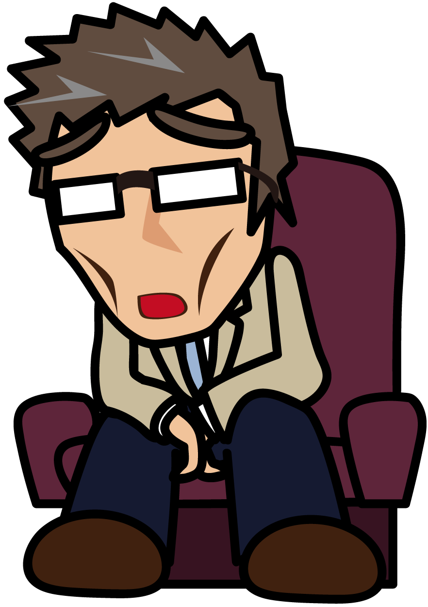 椅子に座って溜息をつくじいさん「妖精さん」