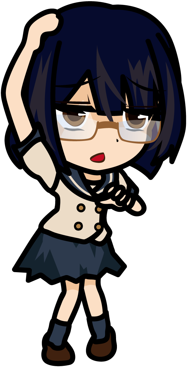 頭をおさえる女子高生「みーたむ」